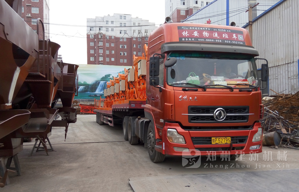 2015年7月13日,發(fā)往廣西的小型攪拌機(jī)準(zhǔn)備出發(fā)。型號為JS500強(qiáng)制式攪拌機(jī),數(shù)量為7臺。